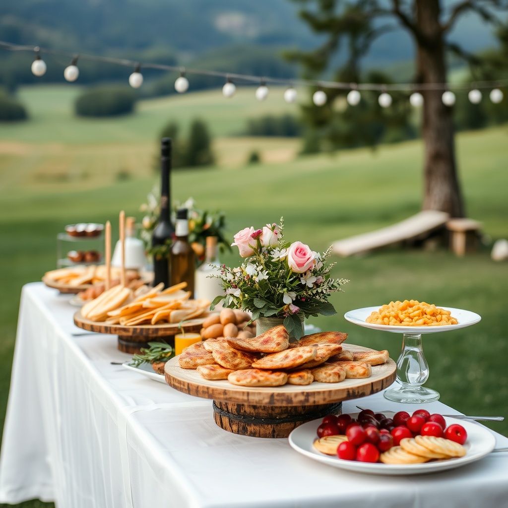 Namesto ene klasične velike torte lahko ponudita “sladki bife s slovenskimi koreninami”: mini potice, krofe, miške, šarklje, krostate z domačim sadjem, modernizirane “slivove cmoke v kozarcu” ali mousse z domačo marmelado. Bar naj temelji na lokalnem: peneča vina, penine, naravna vina, domači likerji in koktajli, poimenovani po slovenskih rekah, gorah ali vajinih skupnih točkah.